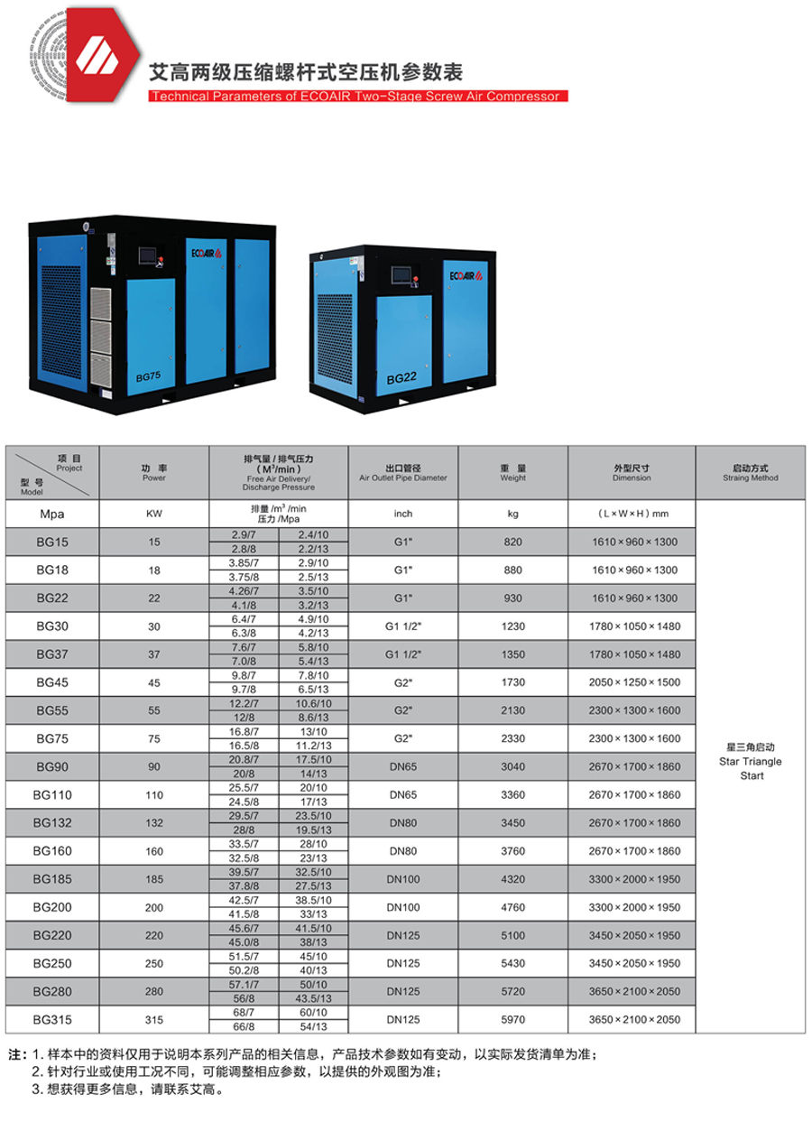 特制低转速压缩机的专用电机,SKF轴承,绝缘等级F级,防护等级IP54,确保无故障运行。效率较同类产品高3~5%,直连机型采用1:1直接转动,不加增齿轮,具有低转速、低噪音、运行可靠、使用寿命长等特点。