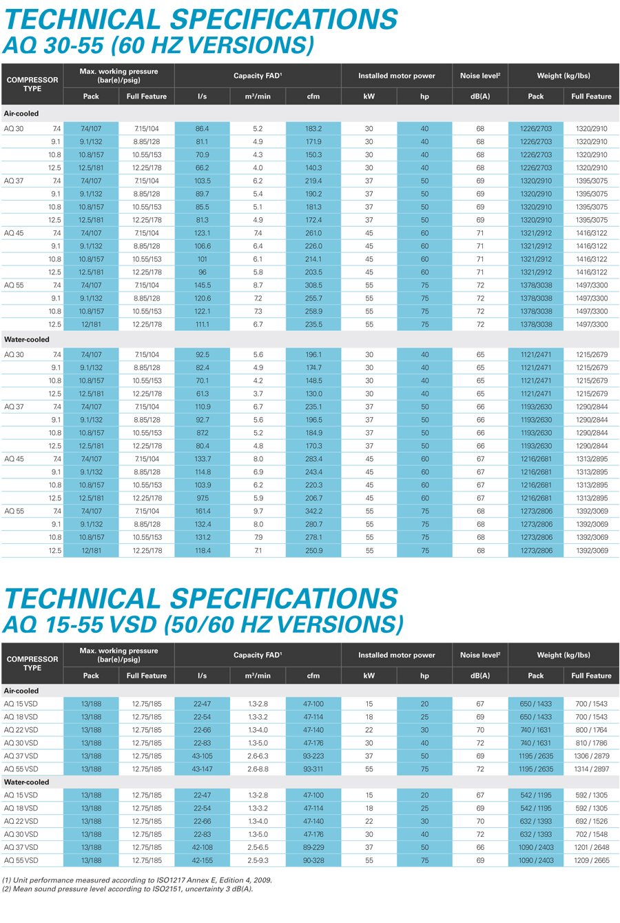 无噪音运行 – AQ 压缩机具有隔音机壳,因此无需占用单独的压缩机房,并且可以在大多数的工作环境中安装。