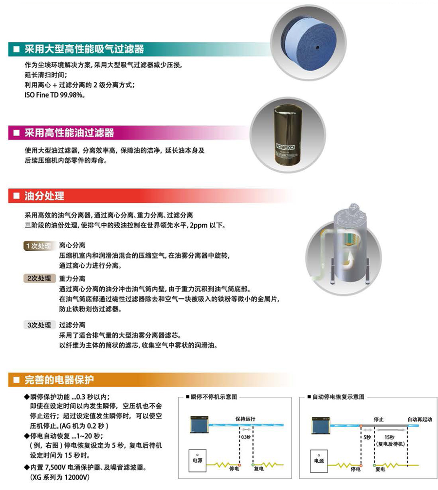 高附加性能(低噪音,洁净的空气,残压启动)。